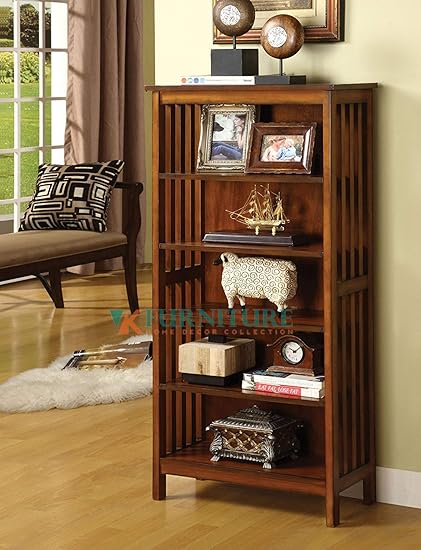 Vk Furniture Sheesham Wood Book Shelf For Living Room Bookcase With 5 Shelves Oak Finish